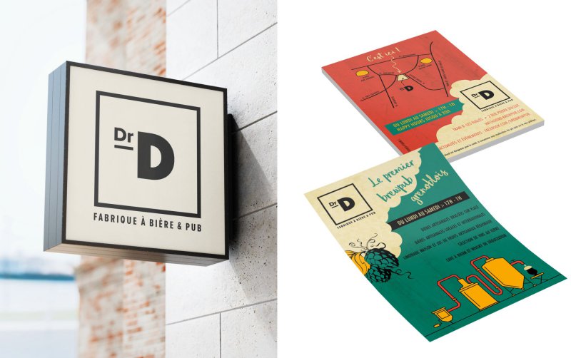 Création d'une identité visuelle globale pour le Dr D. , premier brewpub de Grenoble.