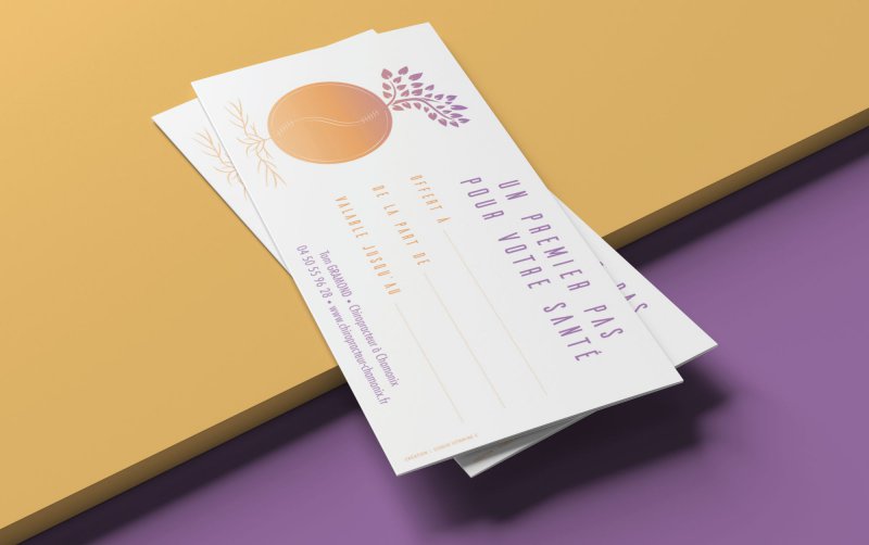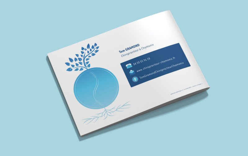 Vitamine C est en charge de la création de son identité visuelle déclinée sur la carte de visite, le livret de chiropraxie à destination des patients et le bon cadeau à offrir pour une première expérience en chiropraxie.