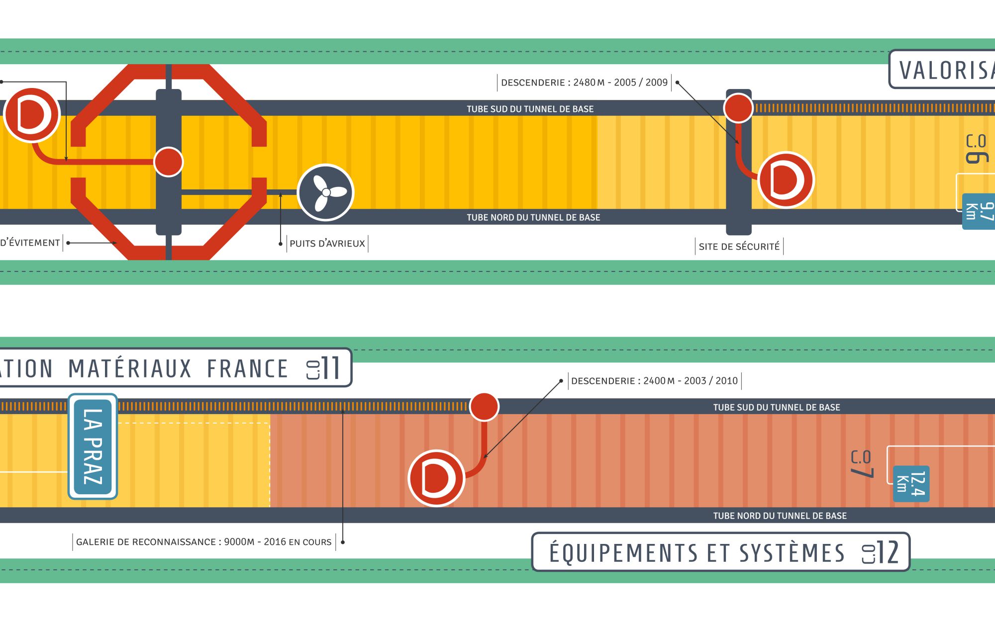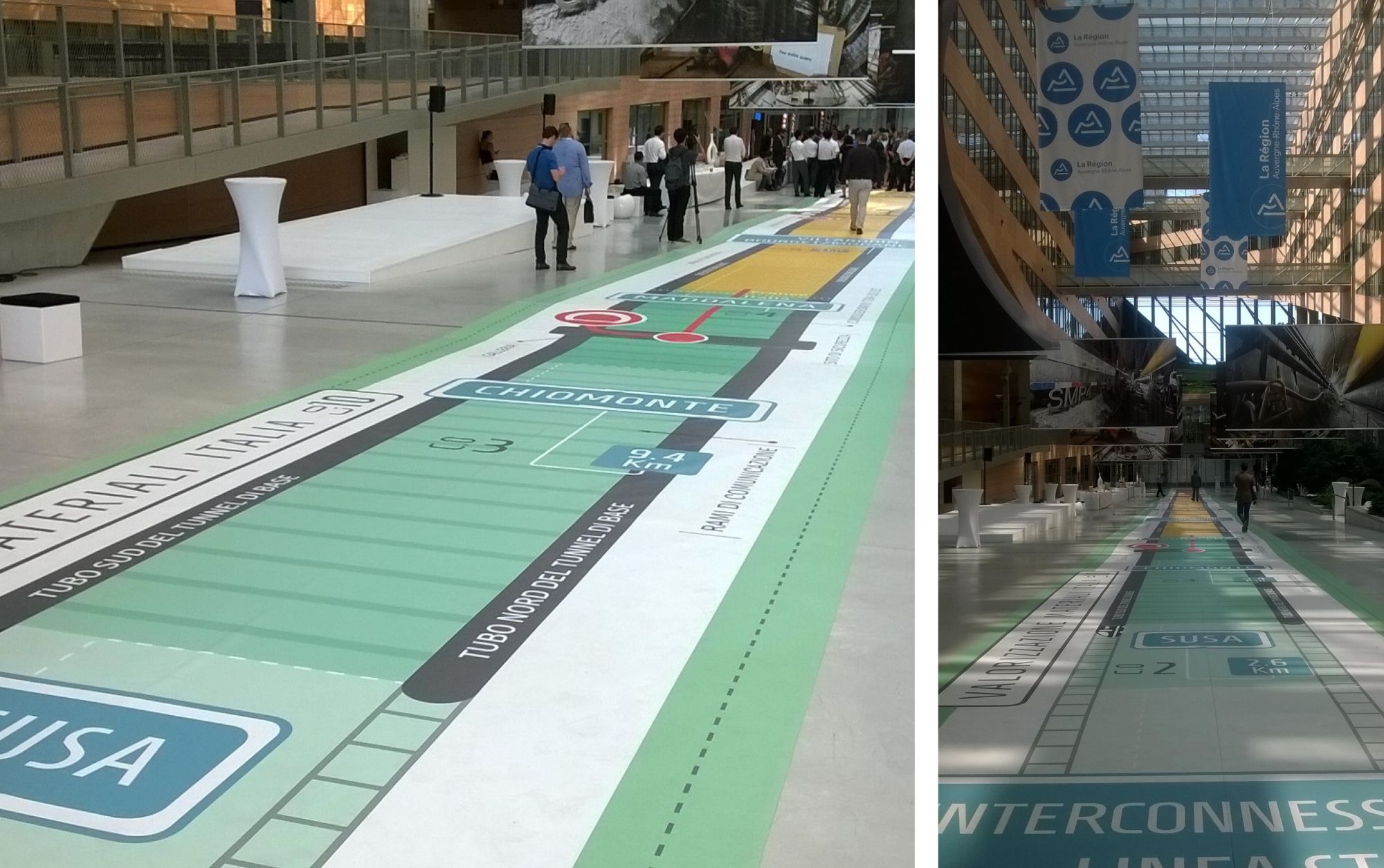 Ce support de très grande taille (4m de haut et 75m de long !) retrace l'ensemble des 12 lots attribués pour la section transfrontalière.